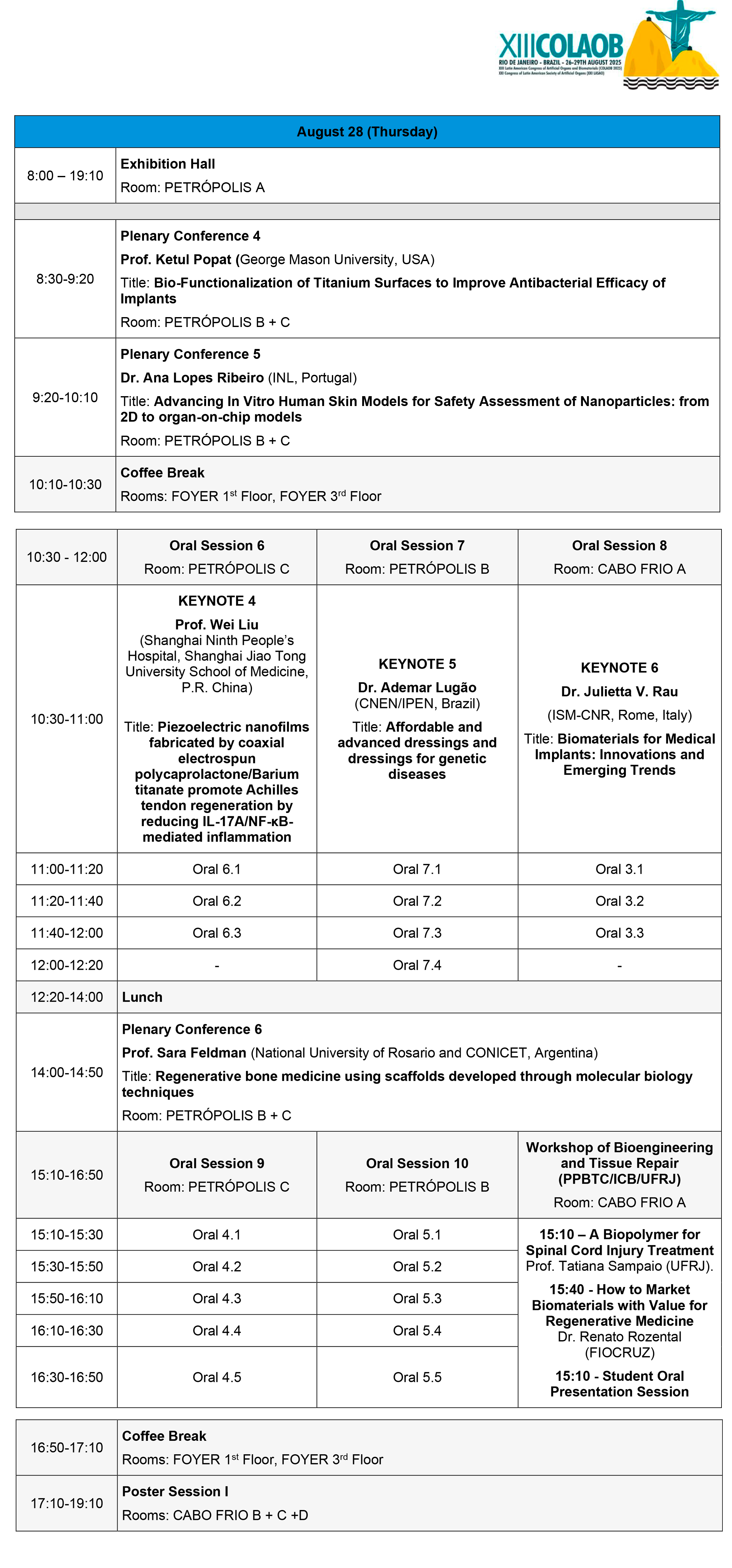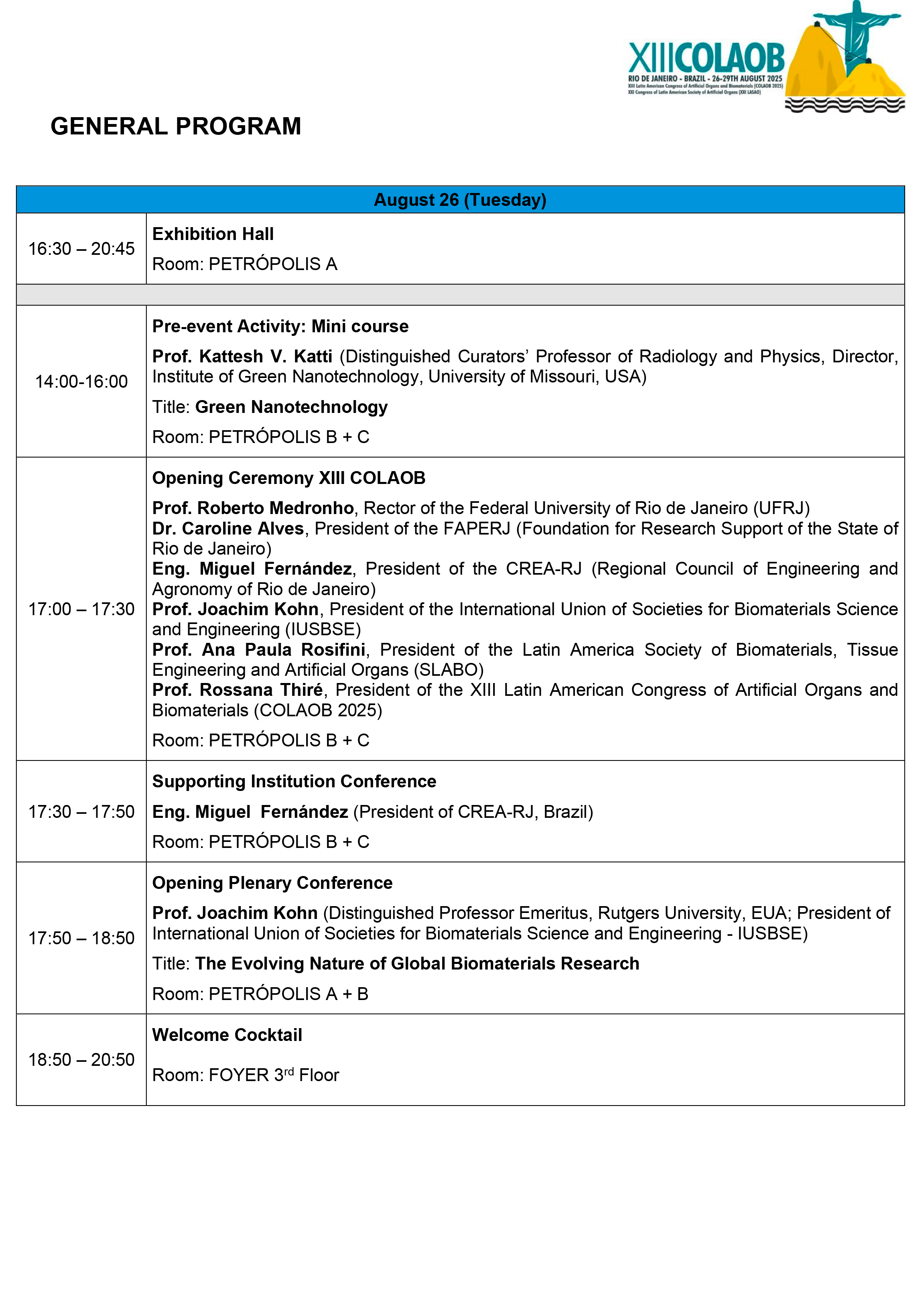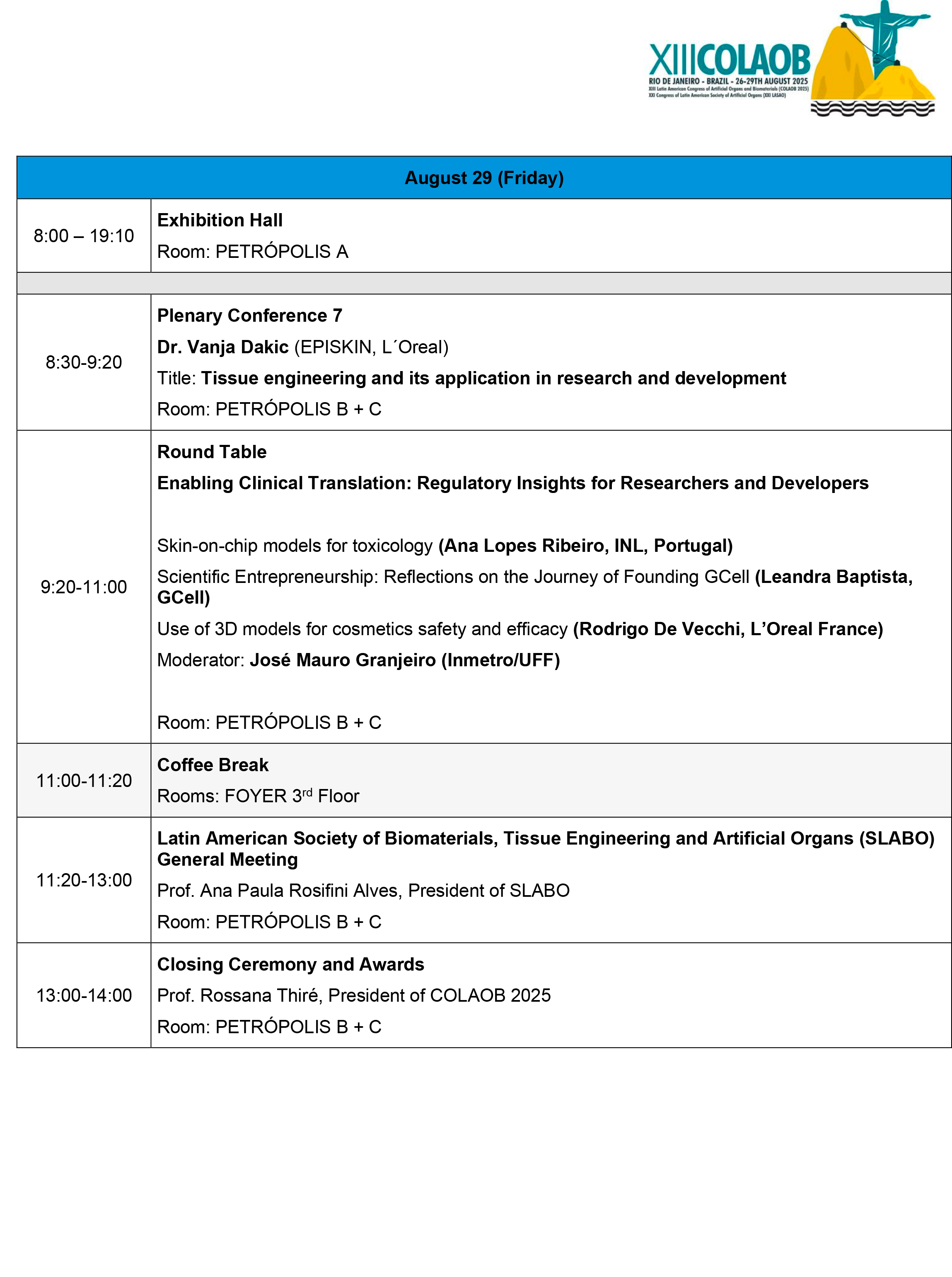 XIII Latin-American Congress of Artificial Organs and Biomaterials – COLAOB 2025Rio de Janeiro - Brazil-26-29th August 2025